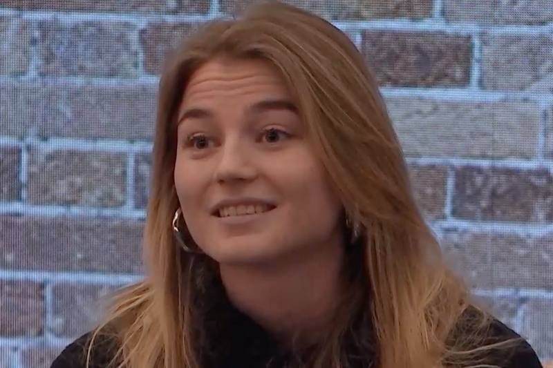“En ik doe een studie in… marketing.” Maar… dat paard, dat komt ook eventjes op beeld: “Daar is ze! Ahhhh.” Versteegh wil weten: “Hoe heet het paard?” Olympia! “Natuurlijk! Heb je ook Olympische ambities met Olympia?” Dat niet! “Nee, zo ver gaan we niet komen. Nee nee nee, dat denk ik niet.” Heeft ze nog andere hobby’s? “Het is toch wel erg, maar ik ben wel heel vaak in de stad te vinden, aan het shoppen. Er gaat een beetje veel geld doorheen.” Waarom moeten mensen haar in een bondje nemen? “Ik ben gewoon gezellig, ook echt wel te vertrouwen, je kunt me echt wel vertrouwen. Als je iets hebt, kun je altijd bij me terecht.” Daarnaast is ze strijdluchtig. Of was het toch strijdlustig? “Lekker fanatiek.”