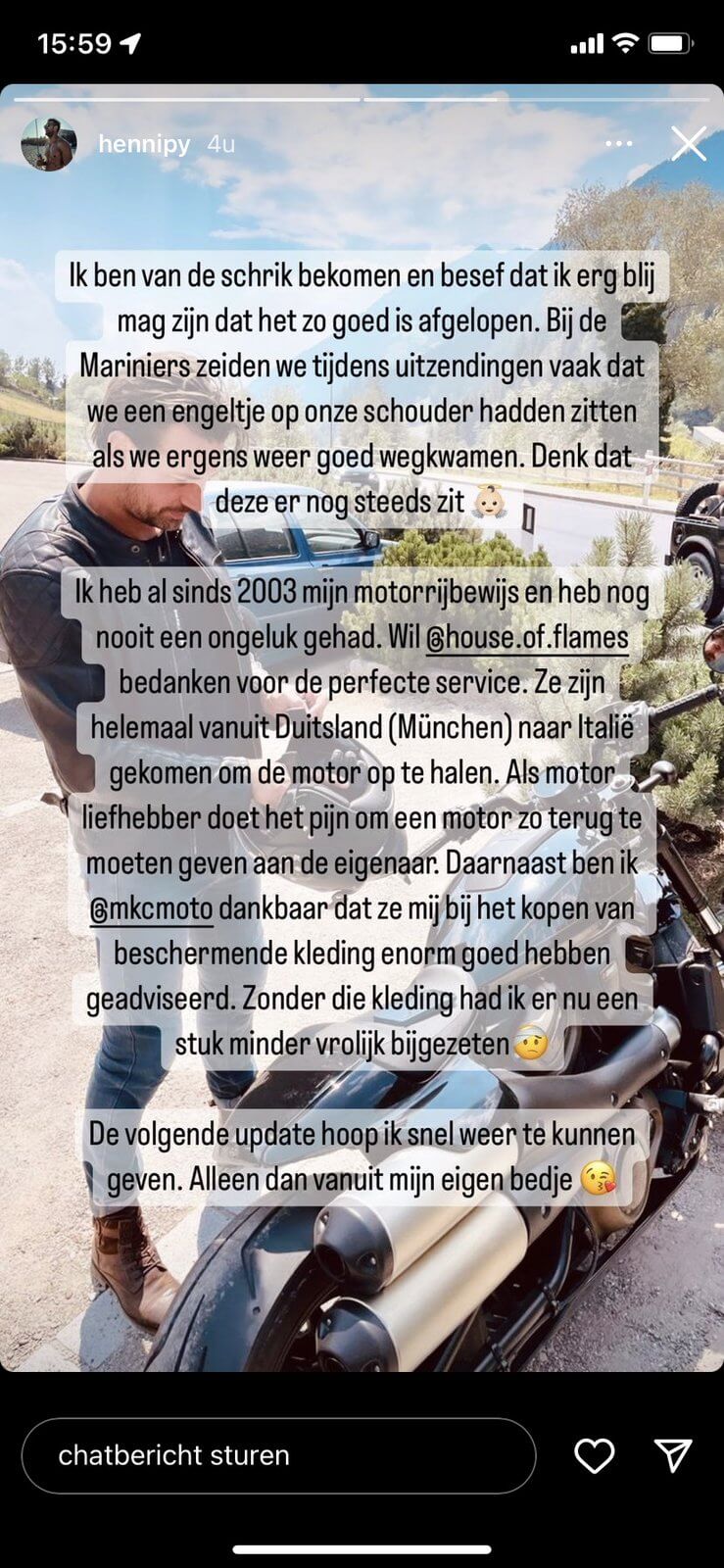 Afgelopen vrijdag werd bekend dat Michel met een traumahelikopter was afgevoerd naar het ziekenhuis na een zware crash. Op Instagram gaf hij zondag een update. Alhoewel Michel nog altijd in het ziekenhuis ligt, gaat het naar omstandigheden goed met hem. De Big Brother-deelnemer hoopt spoedig het ziekenhuis te mogen verlaten.