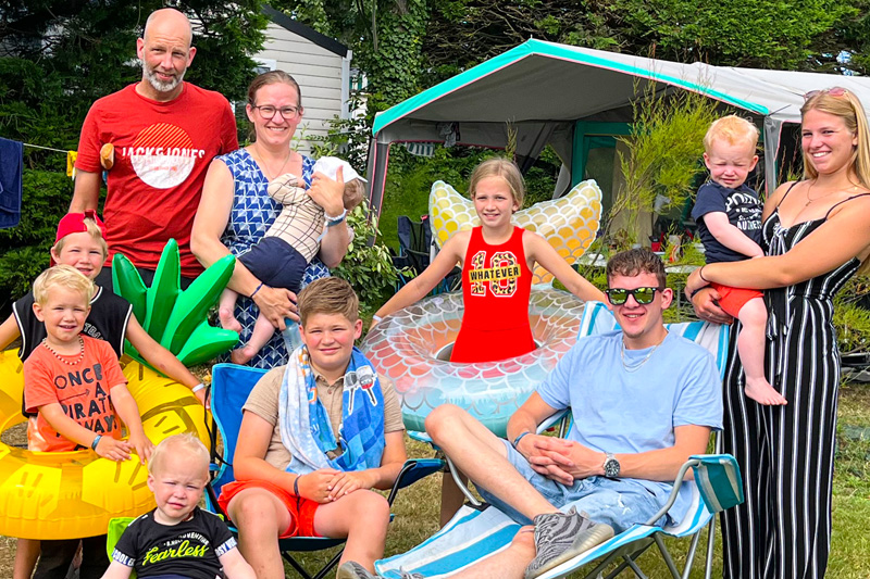 We sommen de hele familie Scheerhoorn eventjes op. Voor de duidelijkheid. Allereerst hebben we vader John (45) en moeder Malindy (36). Dan de kids: Chrissy Lyn (17), Kevin (14), Vikas (11), Isa (9), Brent (5), Boas (3) & tweeling Mick & Jace (1) en Pax (7 maanden). En dus schoonzoon Sander van 21 jaar oud, de vriend van Chrissy Lyn. In Grote Gezinnen, Grote Vakanties gaan dit gezinnetje, dat afkomstig is uit het Gelderse Heteren, met de vouwwagen naar Frankrijk. Om te kamperen. Dat moet wel een reusachtige vouwwagen zijn. Misschien lezen we het verkeerd en moet het ‘vrachtwagen’ zijn?
