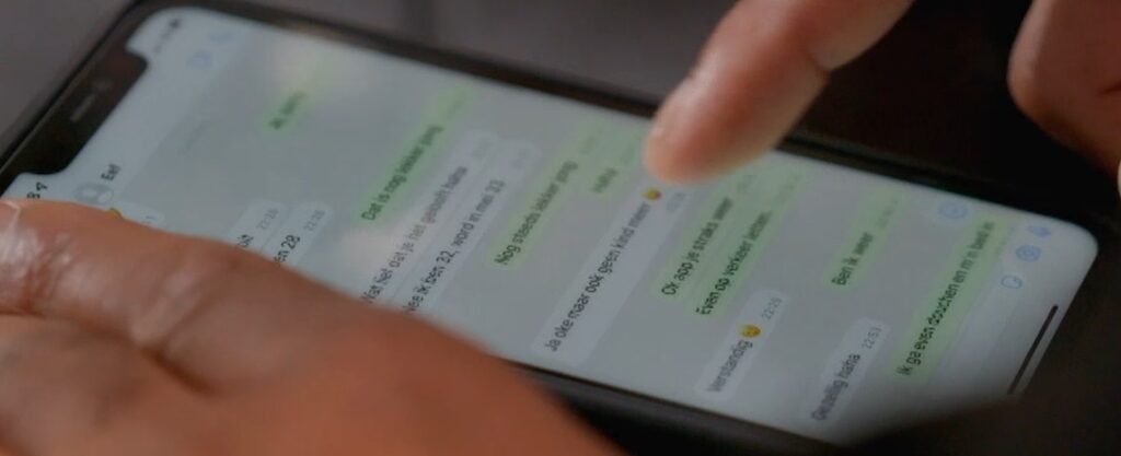 Mark en Evelien kenden elkaar al vaag van een datingapp. Al snel werd duidelijk dat Evelien Mark nog altijd erg interessant vindt; interessanter dan Brian, haar echtgenote. Via WhatsApp heeft ze dat duidelijk gemaakt aan Mark. En als Mark weer aangevallen wordt op zijn ‘affaire’, besluit hij zijn laatste redmiddel in te zetten: hij laat zijn WhatsApp-gesprek met Evelien zien aan Brian en Deveny.