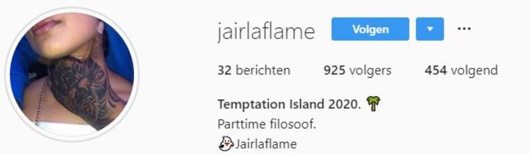 De Belgische krant Het Laatste Nieuws schrijft namelijk: ‘Jair De Rijp, zo heet één van de vermoedelijke verleiders van het nieuwe ‘Temptation Island’ seizoen. De jongeman uit Amsterdam geeft dat zelf weg door de naam van het programma op zijn Instagramprofiel te plaatsen.’