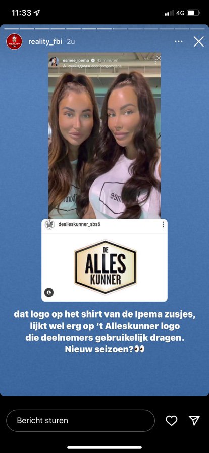 Oplettende volgers is op Instagram opgevallen dat Sharon, Esmee en Jill plots wel heel veel foto’s met elkaar delen. Bij die foto’s droegen ze een shirt waarop het logo van De Alleskunners lijkt te prijken. Het is nog niet bekend wanneer het nieuwe seizoen van start gaat bij SBS.
