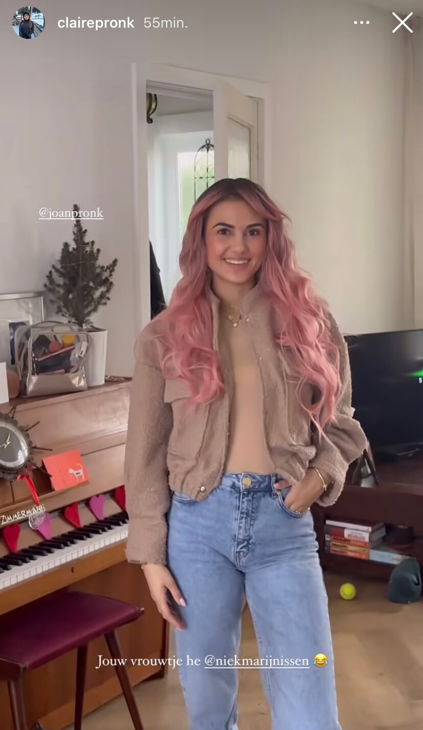Op de Instagram Story van zus Claire zagen we namelijk opeens een foto waarop Joan haar bruine lokken ingeruild leek te hebben voor.. roze haar! Nog niet zo fel roze als Djamila uit The Real Housewives, maar roze is het zeker. De grote vraag is alleen of het wel echt is. Na enig onderzoek blijkt van niet. Op een video horen we zus Claire namelijk lachen: “Ik wist het jonge, dat Brabant zit gewoon in jou!”, waarna Joan lacht: “Staat toch gewoon leuk? Niet alleen voor carnaval.” Een pruik dus!