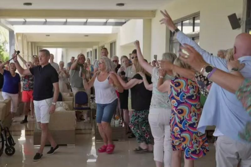 Hij ontvangt alle fans en wijst ze naar de juiste bussen. Tenminste dat is de bedoeling, want het gaat allemaal wat minder soepel dan gewenst. Aangekomen bij het hotel staat Kees klaar met een drankje samen met niemand minder dan Patty Brard. Het is vervolgens chaos bij de lobby, maar wanneer iedereen zit kan het feest beginnen. Alle artiesten zingen een liedje en de polonaise wordt direct ingezet.