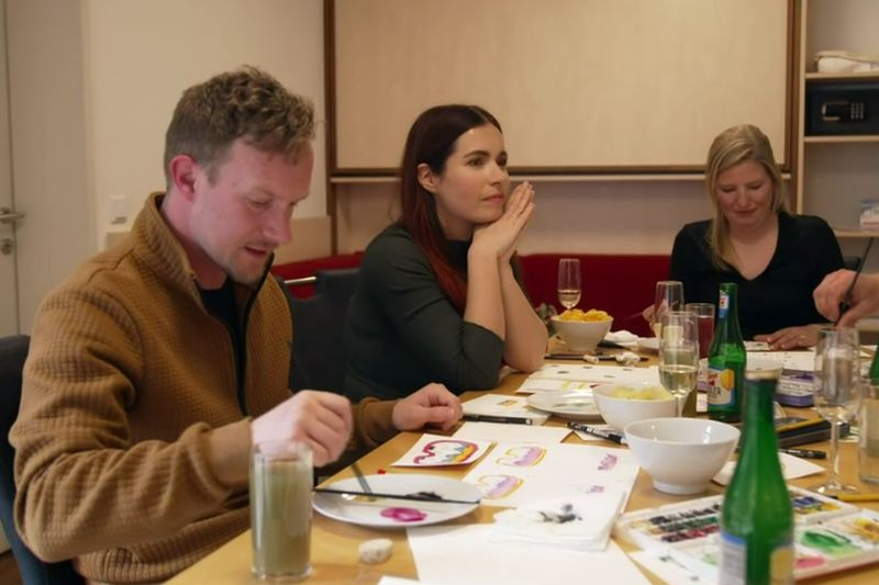 “Het gezamenlijk schilderen was een dieptepunt”, zegt Dijkshoorn over de date van Hanneke met Dave en Jordy. “Toch had het erger gekund. Hanneke had ook een avondje Twister kunnen organiseren. Kom je vol met liefde en vol met hartstocht aan in een wintersportgebied en dan hang je opeens met je voet op geel en je hand op rood, vlak onder de oksel van een man die ook veel liever zijn hand op de blote rug van Hanneke zou willen leggen.”