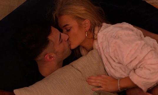 Even later heeft de blondine alle moed verzameld en zit ze op de bank met Salar, die vraagt ‘of ze iets tegen de rest heeft gezegd?’ Opeens lijkt het heel ongemakkelijk tussen de twee… Was die zoen dan toch niet zo handig?