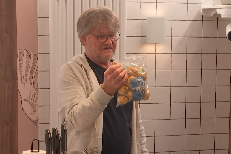 Henk wil graag aardappelen eten, want daar raakt hij niet verstopt van. Maar op een gegeven moment staat hij met de piepers in zijn handen en kijkt hij vertwijfeld: “Hoe moet ik dit dan klaarmaken? Schillen?” Evelyn: “Gaan we gekookte aardappelen eten of aardappelen uit de oven?” Hij snapt het niet zo goed: “Wat is het verschil dan? Dat is toch gewoon hetzelfde…”