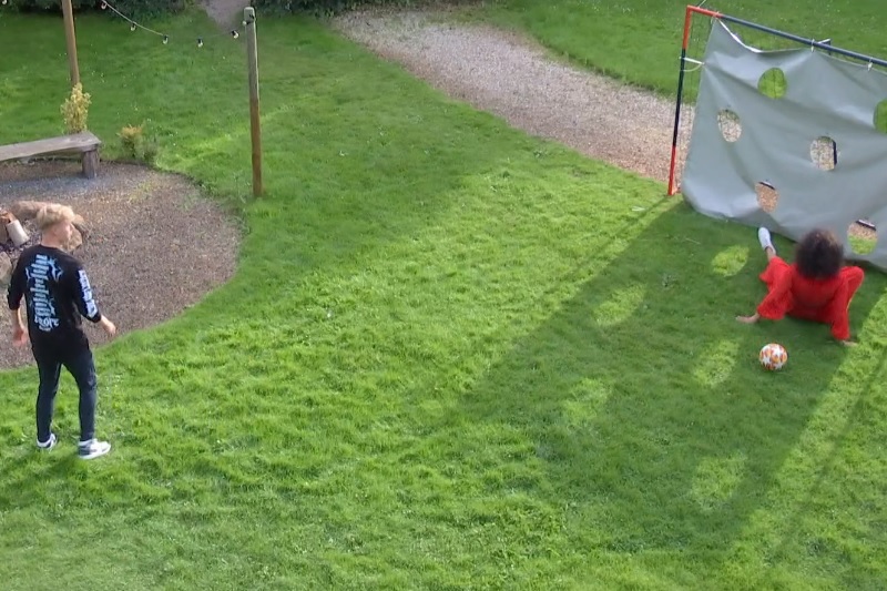 Op een gegeven moment gaan Wesley en Sarah buiten voetballen, waarbij Sarah er een trucje uit probeert te gooien, maar daarbij gaat ze vol op haar plaat. Haar date kan een lachbui niet onderdrukken…