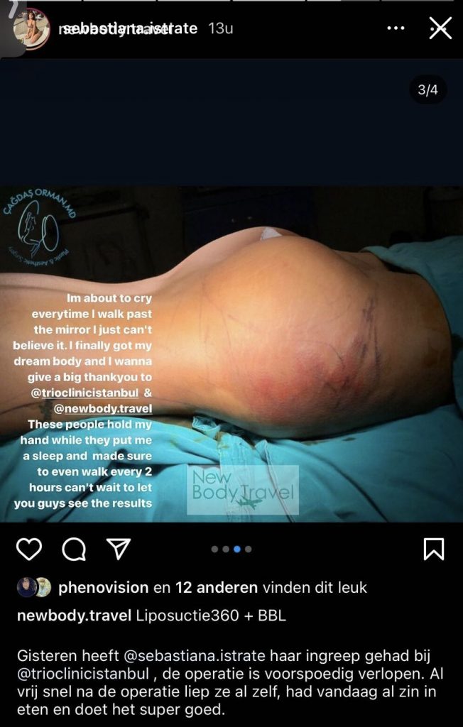 Vorige week onderging Sebastiana Istrate uit Love Island seizoen 1 een liposuctie; er wordt dan vet uit je buik (of een andere plek) overgeplaatst naar je billen. Op Instagram legt ze uit dat de Brazilian Butt Lift haar nu over een zware periode van depressies en aankomen in gewicht moet gaan helpen.