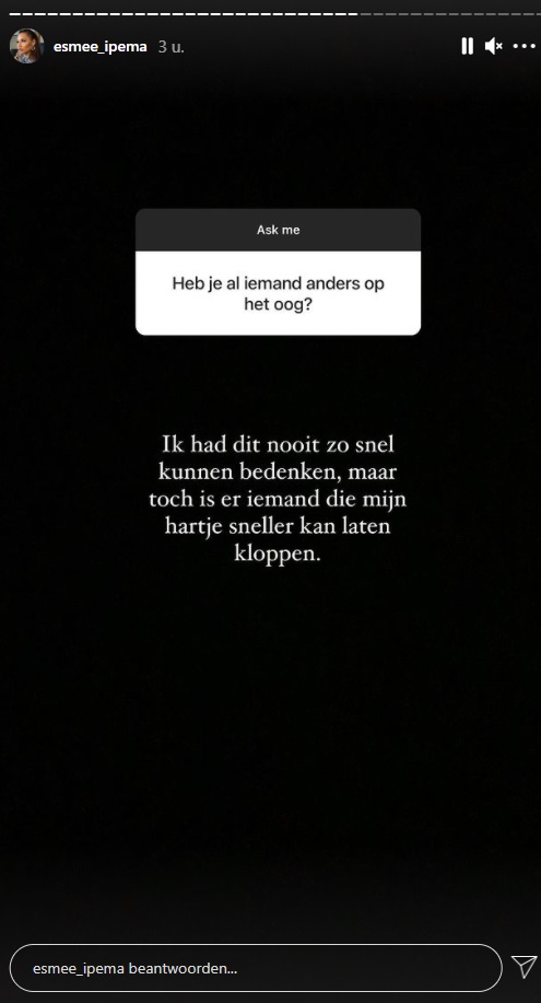 Met Jeroen was Esmee al sinds december 2019 samen, maar over hem heen geraken kostte duidelijk niet al te veel moeite. Hoe dan ook; veel succes!