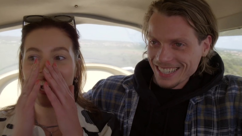 Ze vertrekken samen voor een spannende, maar romantische date vol adrenaline én liefde in een klein vliegtuigje, gevolgd door een lunch op het vliegveld zelf. En daar spatten de vonken er gelijk behoorlijk van af. Van arm in arm in het vliegtuig, tot hand-in-hand aan het eettafeltje. En.. er wordt zelfs stiekem (een klein beetje) gekust!