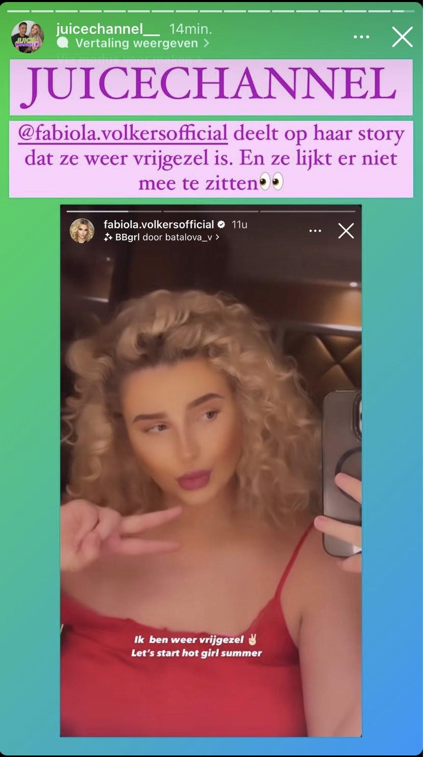 Fabiola Volkers is weer single. In haar Instagram Story bevestigt de voormalig deelneemster van onder meer Temptation Island, First Dates en Echte Meisjes in de Jungle dat haar relatie weer voorbij is.