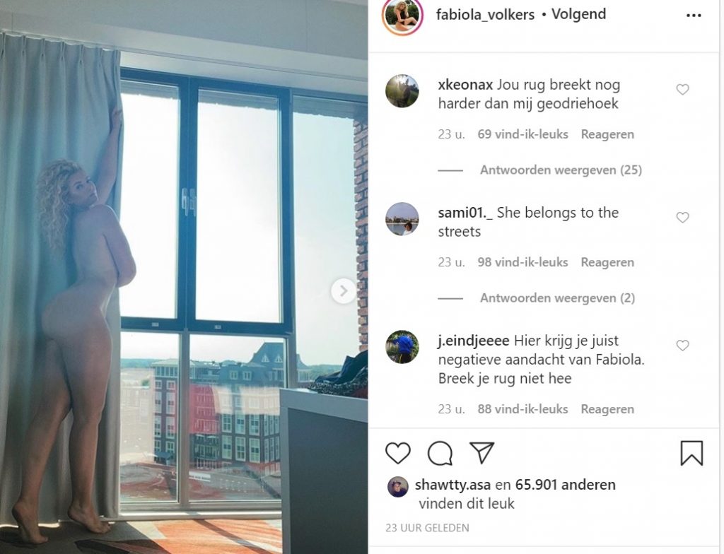 Fabiola Volkers is niet vies van een beetje ophef op de sociale media, maar nu maakt de blondine het wel héél bond. Op Instagram trekt ze letterlijk alles uit en haar volgers kunnen het niet erg waarderen. Het gaat van ‘zit je aan de crack, malloot?’ tot ‘Dit is een van de redenen dat ik geen dochter wil’..