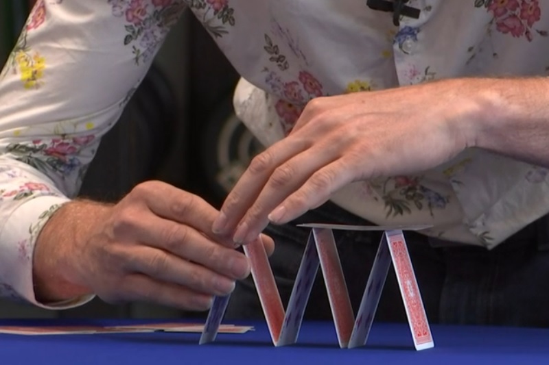 Degene die als eerst drie keer een kaartenhuis van minstens vijftien kaarten (dat tien seconden blijft staan) klaar had, ontsnapte aan eliminatie. Mede door de trillende handjes van beide heren schoot het lange tijd niet echt op. Tot Erik opeens de smaak te pakken heeft en zijn eerste kaartenhuis in elkaar krijgt. Al vrij snel volgt een tweede: hij heeft de juiste tactiek gevonden en het werkt als een dolle. Imadiddin komt nog wel tot zijn eerste kaartenhuis, maar daarna is het Erik die zijn derde in elkaar zet: hij wint dus. Imadidddin moet naar huis!
