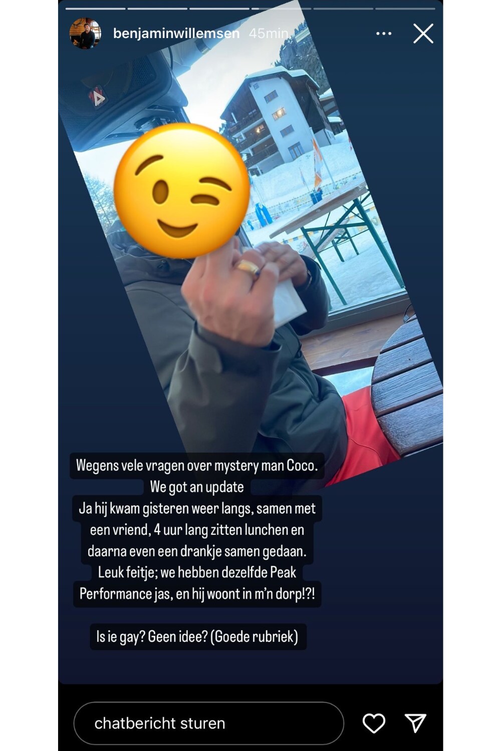 Na zijn teleurstellend afgelopen zoektocht naar liefde in Winter Vol Liefde lijkt Benjamin nu dan toch van de markt. Op Instagram schrijft hij over een mysterieuze man genaamd ‘Coco’.