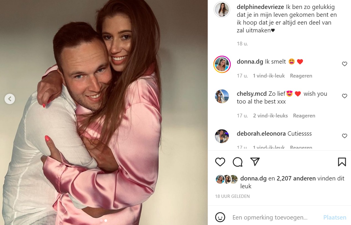 In de comments zien we alleen maar positieve reacties van mensen die haar het liefdesgeluk gunnen. Zo schrijft Donna (ex Nico, zelf nog single vandaag de dag): “Ik smelt.” En voormalig Temptation-single Chelsy (ook weer single, na een korte relatie met Tempa-collega Joop): “Zo lief! Wish you too al the best.”