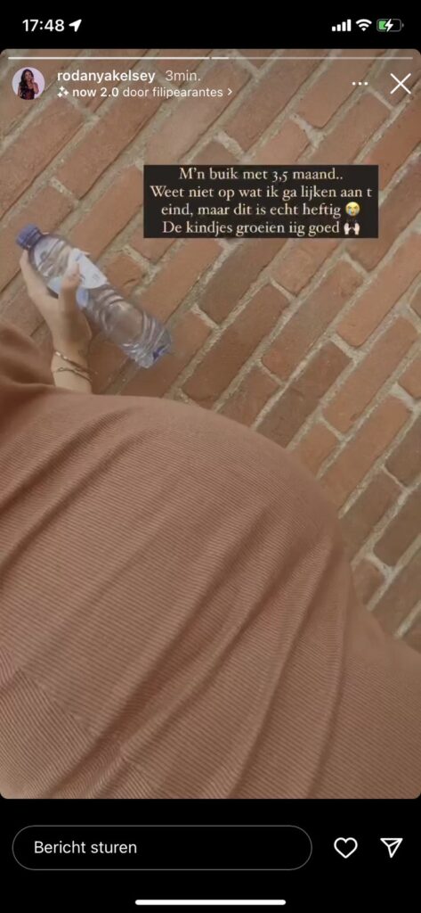 Inmiddels is duidelijk dat Morgan niet de vader van de aanstaande tweeling is, dat is namelijk haar nieuwe vriend over wie verder nog weinig bekend is. Op Instagram deelt Rodanya vandaag een foto van haar al aardig gevormde babybuik. Dat ziet er al weer mooi uit, na 3.5 maanden zwangerschap. ‘Weet niet op wat ik ga lijken op het eind, maar dit is echt heftig! De kindjes groeien in ieder geval goed’, schrijft ze. Fijn!